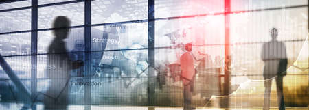 Startup concept with double exposure diagrams blurred background.