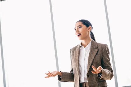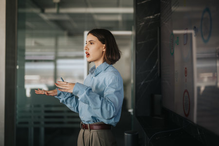 Confident businesswoman giving a presentation in modern office