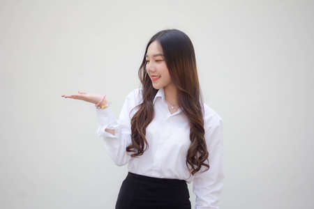 portrait of thai adult office girl show hand