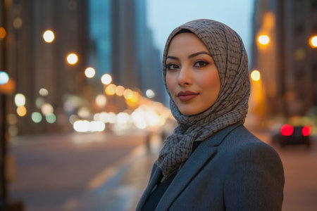 Portrait of a confident businesswoman wearing hijab in a corporate setting, representing diversity and inclusion in the workplace