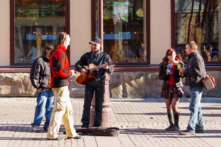 MOSCOW, RUSSIA - March 25, 2007. Street musician with guitar on famous Arbat street in the historical center of Moscow.