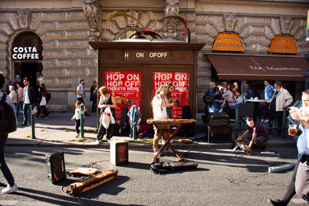 ROME, ITALY - JUNE 3, 2016: Street musicians playing their instruments