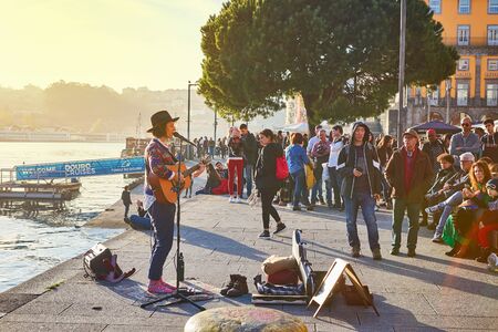 09 of December, 2018 - Porto, Portugal: Embankment near the River Doura in the colorful quarter of Ribeira, the old city center