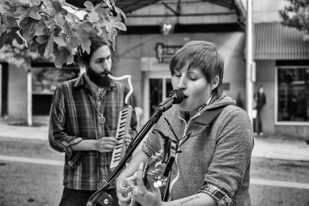 ASHEVILLE, NORTH CAROLINA OCTOBER 12 An unidentified street performers playing contemporary style music in downtown Asheville on October 12, 2013