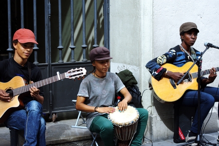 QUITO, ECUADOR, 19 JUNE 2019. Street musicians perform in Quito, Ecuador.