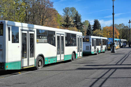 Buses on the parking lot in the city
