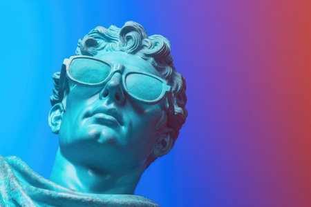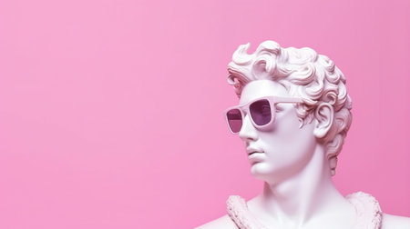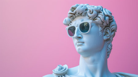 Gypsum statue in sunglasses on colored abstract background. Creative aesthetic contemporary art collage. Fashion wallpaper. Created with Generative AI