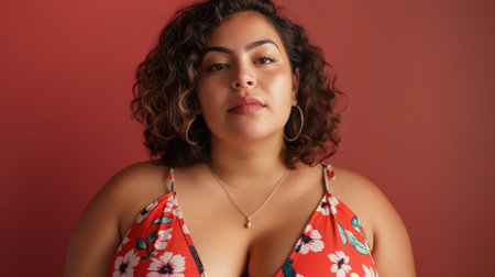 The beauty of diversity confident plus size woman wearing bold floral lingerie set strikes powerful