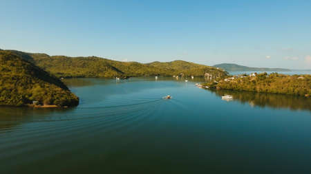 in the philippines island beautiful cosatline tree hill and boat for tourist