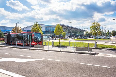 BRATISLAVA, SLOVAKIA – OCTOBER 6 2019: Public bus No. 61 leaves Bratislava airport (Slovakia)