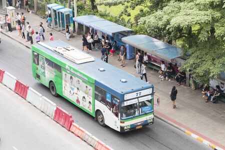 Bangkok, Thailand - November 07, 2015: Public transport bus at bus stop BTS in jatujak bangkok, thailand.