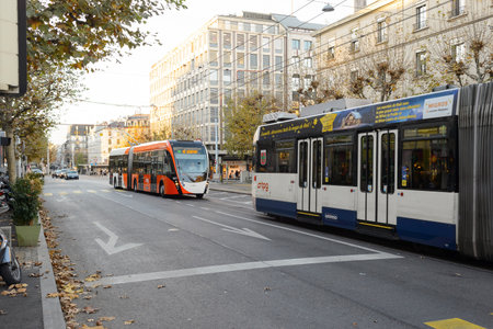 GENEVA, SWITZERLAND - NOVEMBER 18, 2015: view of Geneva. Geneva is a global city, a financial center, and worldwide center for diplomacy due to the presence of numerous international organizations.