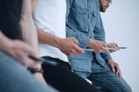 close-up of smartphones in the hands of business youth