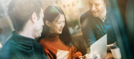 Group of young businesspeople working together in creative office. Planning, analysis, collaboration.
