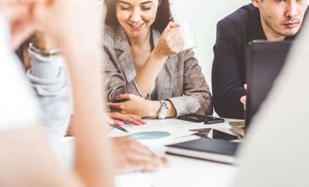 Close up Business people meeting to discuss the situation on the market. Business Financial Concept