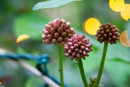 Ficus Hispida Linn or Ficus Tinctoria fruits are growing on the branches of the tree in nature garden