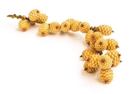 casuarina equisetifolia fruits dried on white background
