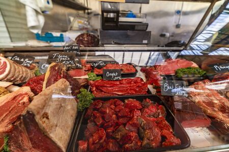 Selection of quality meat in a butcher shop.
