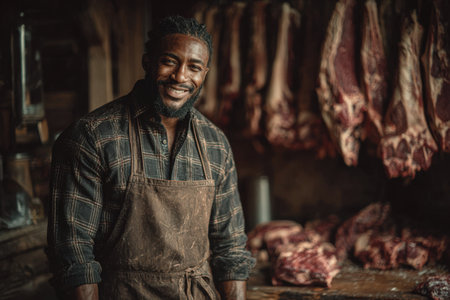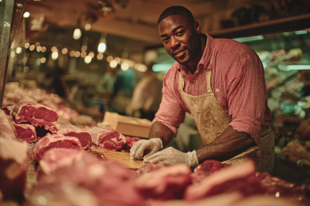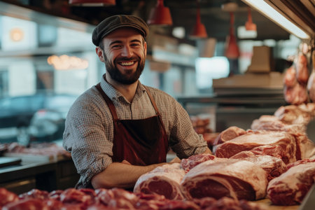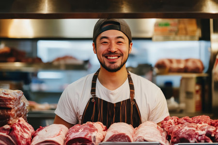 Deep product respect by butcher genuine smile meticulously prepared cuts