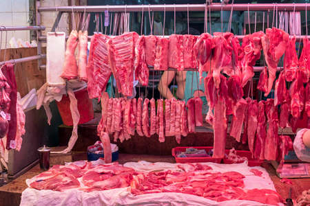 Red Meat Hanging at Butcher Shop in China