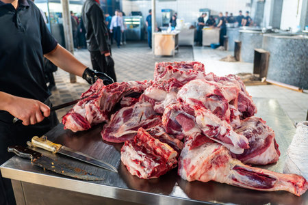 fresh meat at a conventional marketplace