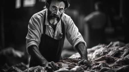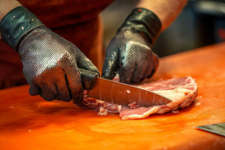 Meticulous butcher precision and craftsmanship organized workspace