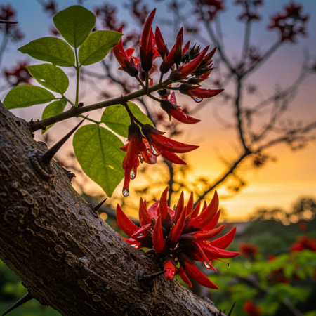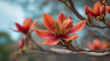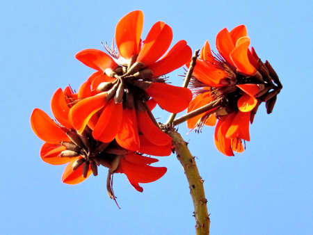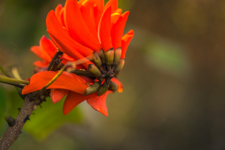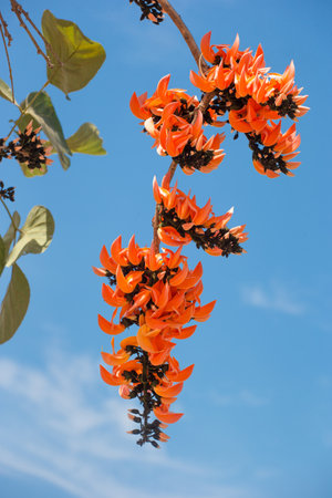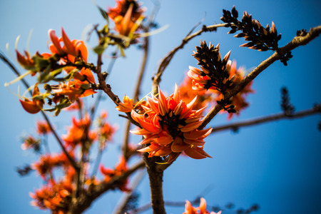 beautiful blooming orange exotic tree flowers closeup Erythrina caffra