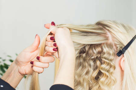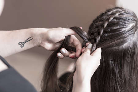 Hairdresser making a braid on long hair