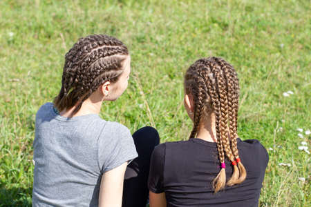 Two girls with afro braids. Back view.