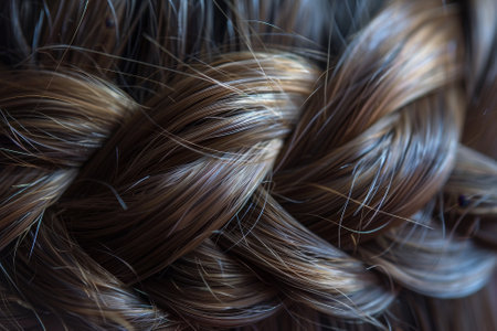 This close-up image captures a stunning braid in long brown hair, elegantly showcasing the intricate weaving and beautiful texture, perfect for beauty and hair styling themes.