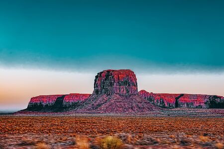 Sunset over mesa in Monument Valley tribal park, Navajo reservation