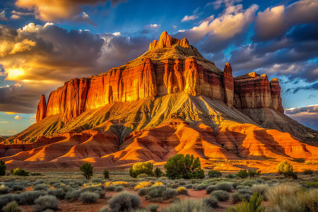 Stunning sunset illuminating a majestic desert plateau. Breathtaking landscape.