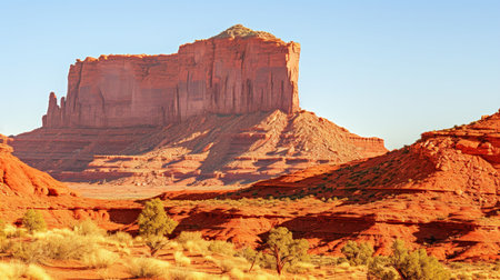 Desert Rocky Mountain American Landscape. Morning Sunny Sunrise Sky Art Render. Oljato-Monument Valley, Utah, United States. Nature Background
