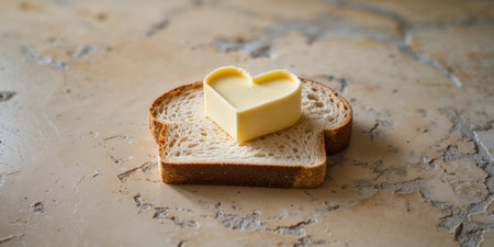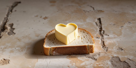 AI Generated. Bread lying on a plastered floor with a piece of butter shaped like heart on top