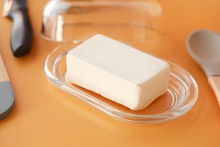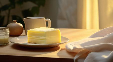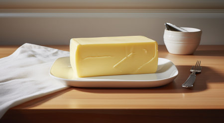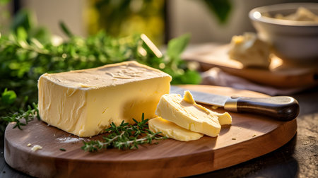 AI Generated. Fresh butter on a cutting board in bright sunlight