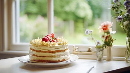Homemade birthday cake in the English countryside house, cottage kitchen food and holiday baking recipe inspiration
