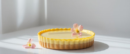 AI Generated. lemon tart with glossy glaze and edible flower garnish