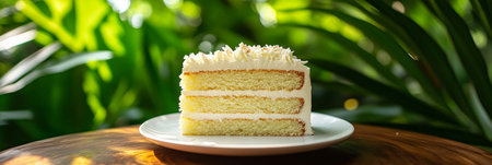 Deliciously Elegant Slice of Coconut Cream Cake with Whipped Frosting and Toasted Coconut Topping
