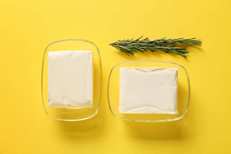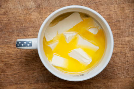 Butter Piece in Yellow Plastic Cup Ready to Use. Organic Food.
