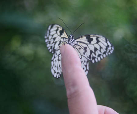 white tree nymph butterfly (lat. idea leuconoe) with green out of focus background