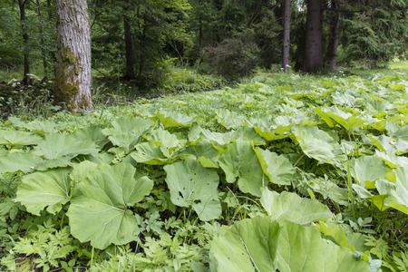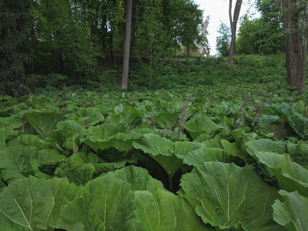 Petasites japonicus Gigantea or Giant Japanese Coltsfoot plant, growing in the garden.