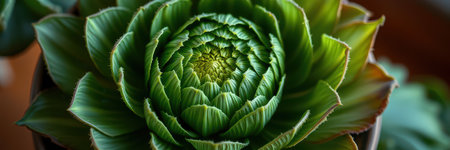 Succulent plant with intricate leaf patterns thriving in a bright indoor setting
