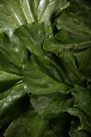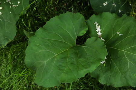 Fresh leaves of a large burdock, Arctium lappa or grosse Klette