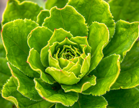 Close-Up of Vibrant Green Ornamental Cabbage Plant with Textured Leaves and Intricate Patterns