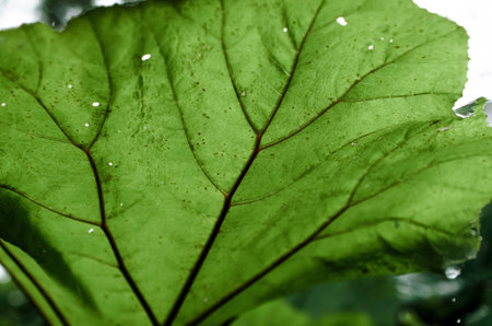 Big green leaf from below, close-up