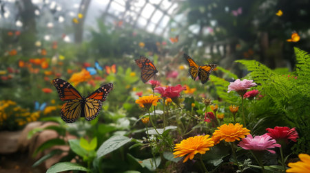 Peaceful and serene outdoor oasis filled with vibrant butterflies. Colorful flowers. And lush greenery. Creating a diverse habitat for wildlife and promoting natural beauty. Pollination