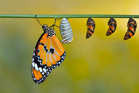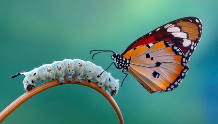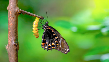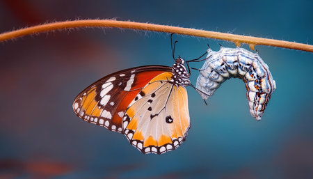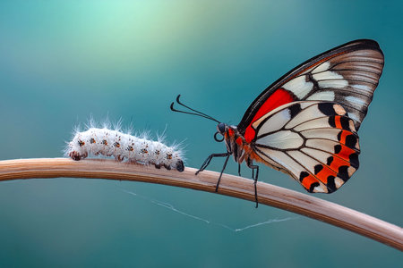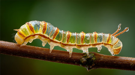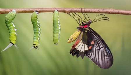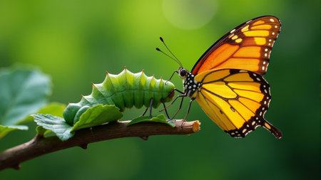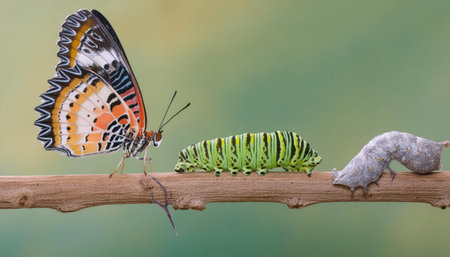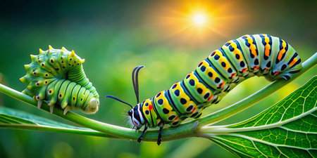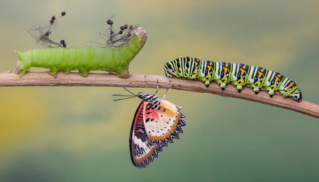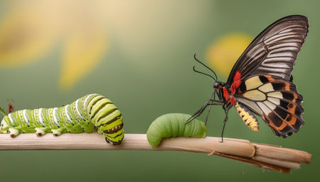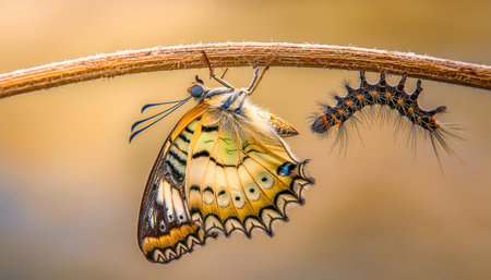 Caterpillar at branches edge ready to transform into butterfly symbolizing growth and change
