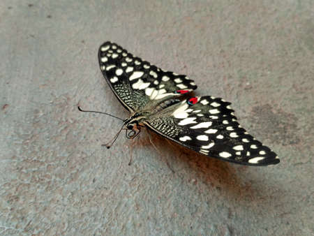 Colorful butterfly on concrete floor urban street