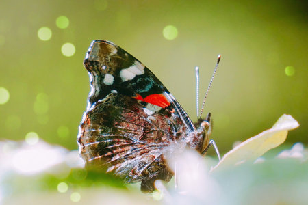 Photo of a close-up of a beautiful butterfly on a vegetative summer background
