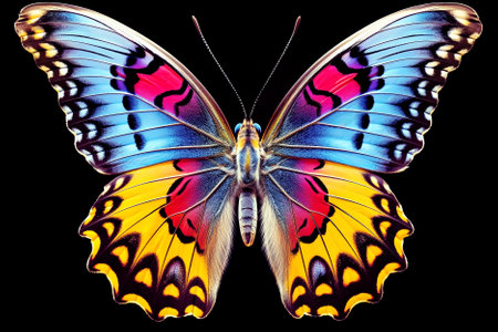 Vibrant butterfly in nature, showcasing multi colored elegance and fragility generated by artificial intelligence
